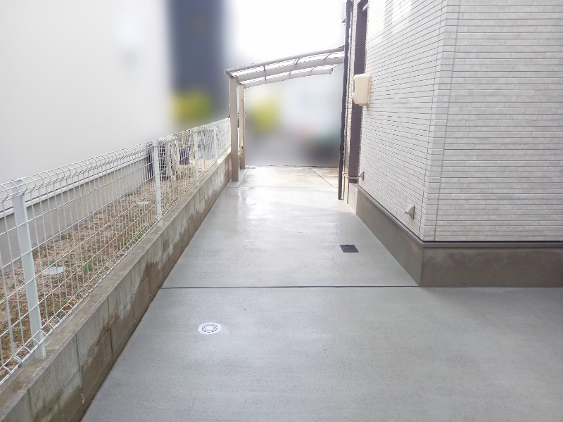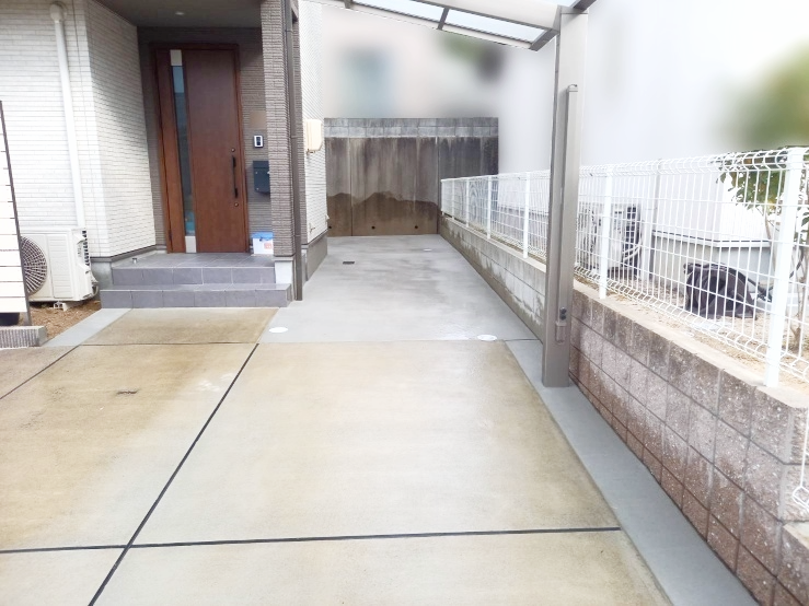 雑草のお悩みを抱えていらっしゃったF様。今回、裏庭や通路、カーポート横の隙間部分も、コンクリートにしました。毎年暖かくなると目につき、お手入れが大変だった雑草も生えにくくなり、日々のお手入れの負担が軽減されました。