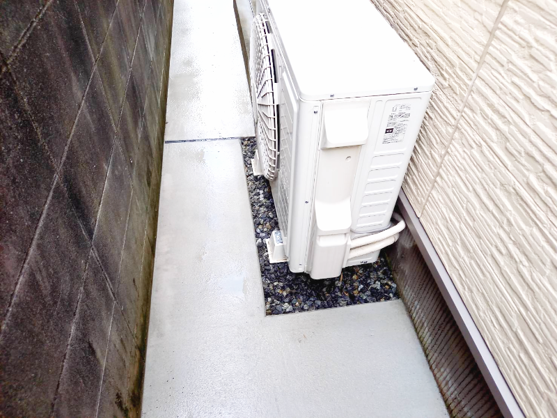 O様より、『家のまわりに雑草が生えて困っているので、家のまわりを土間コンクリート打ちにしたい』とのご相談をいただきました。長年お悩みだった雑草対策として、建物まわりの土部分をコンクリート施工しました。施工後は、草取りの手間も軽減され、快適にお使いいただける環境になりました。