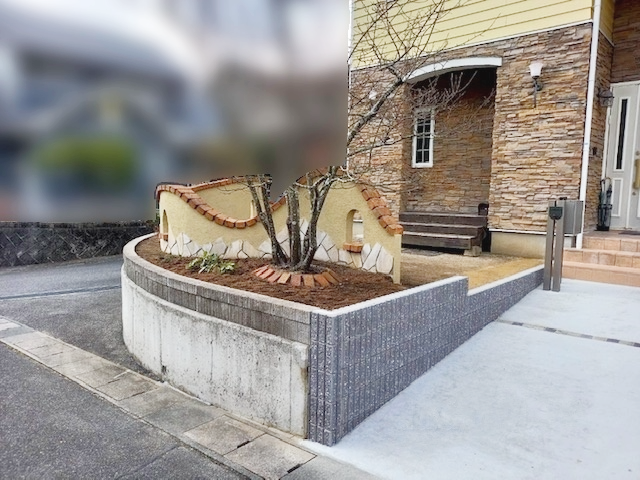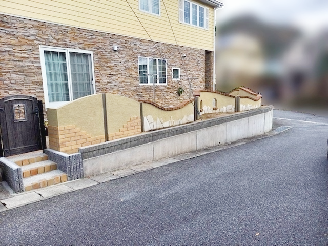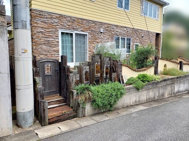 外構に使用している枕木が経年劣化で朽ちてきているので、外構のリフォームがしたい。と、ご相談がありました。朽ちた枕木の代わりにアルミ材の柱を建て、一部目隠しの塀を新設し、既存の塀も、塗り直しました。劣化した駐車場のコンクリートも全部撤去し、打ち直しました。