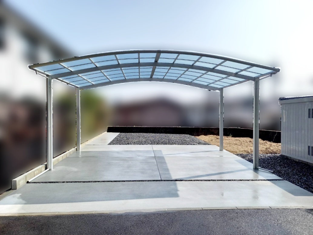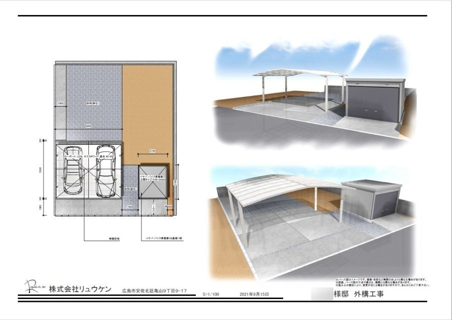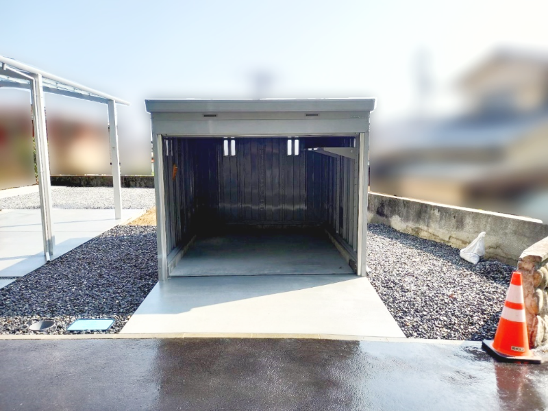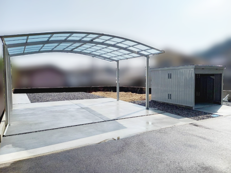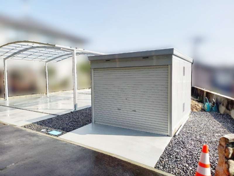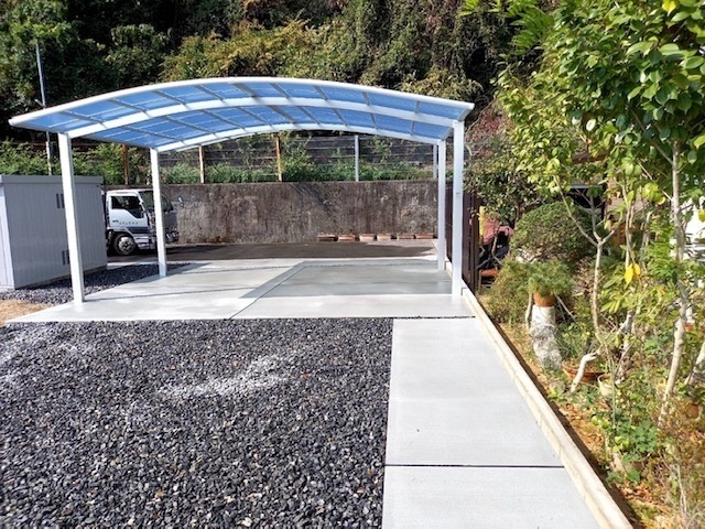 以前、ご依頼を頂いたお客様からのご紹介で、お問合せ頂きました。駐車スペースの土間コンクリートとカーポート・バイクガレージ設置のご依頼を頂きました。